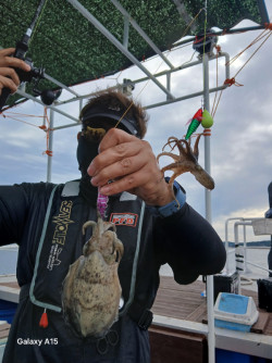 태안권 주꾸미 조황입니다.변덕스러운 날씨에오늘도 우중전으로 시작하였습니다.많은 양의 비는 아니지만오전 피딩타임에 조과를 괴롭히네요내일 명절 당인 정상 출항 합니다.문의 주시기 바랍니다.